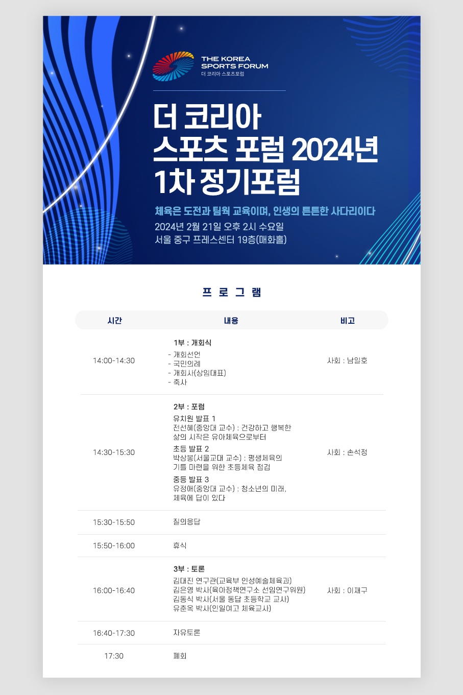 [안내] 더 코리아 스포츠 포럼 2024년 1차 정기포럼