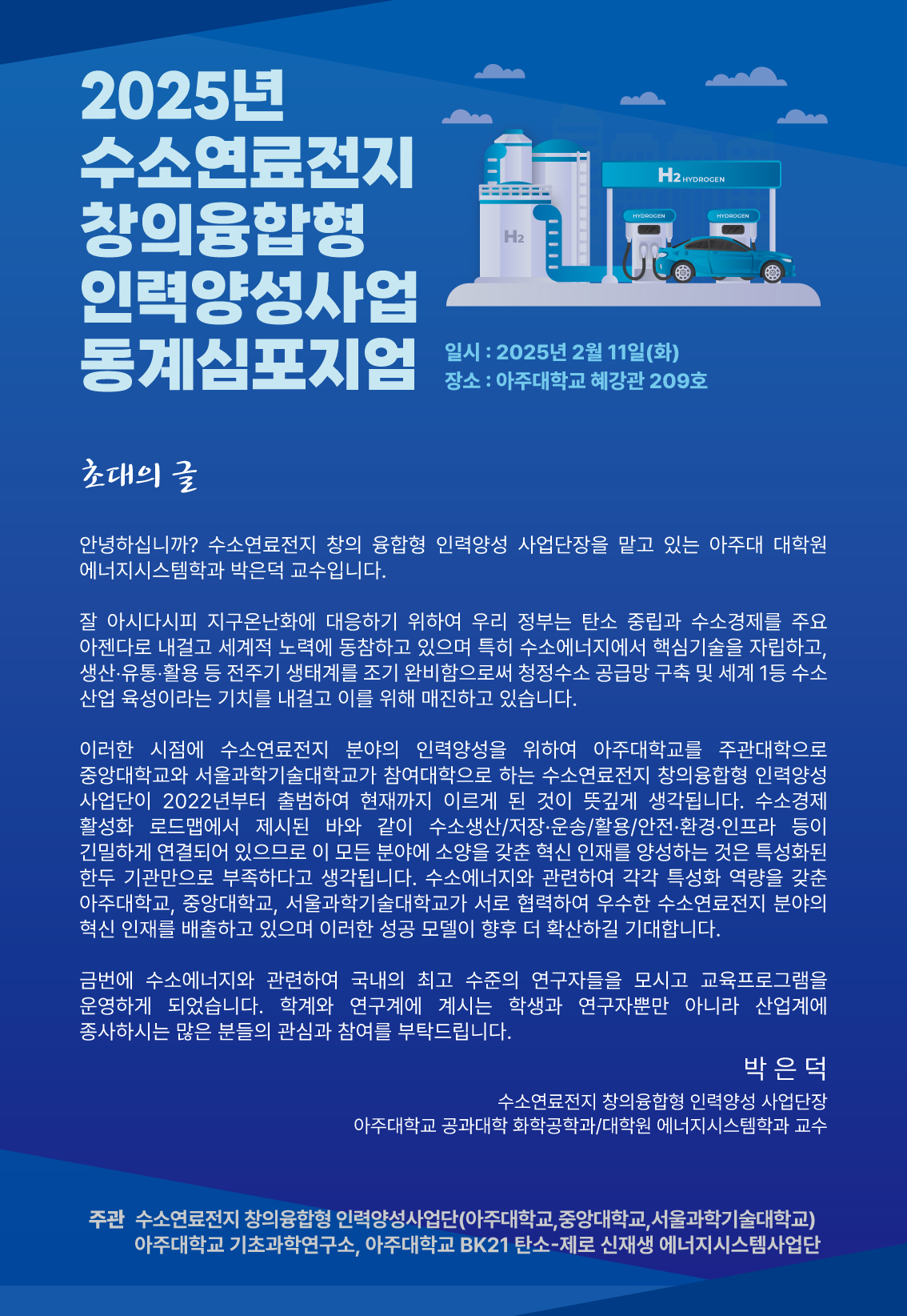 [아주대학교] 2025년 수소연료전지 창의융합형 인력양성사업 교육프로그램 안내