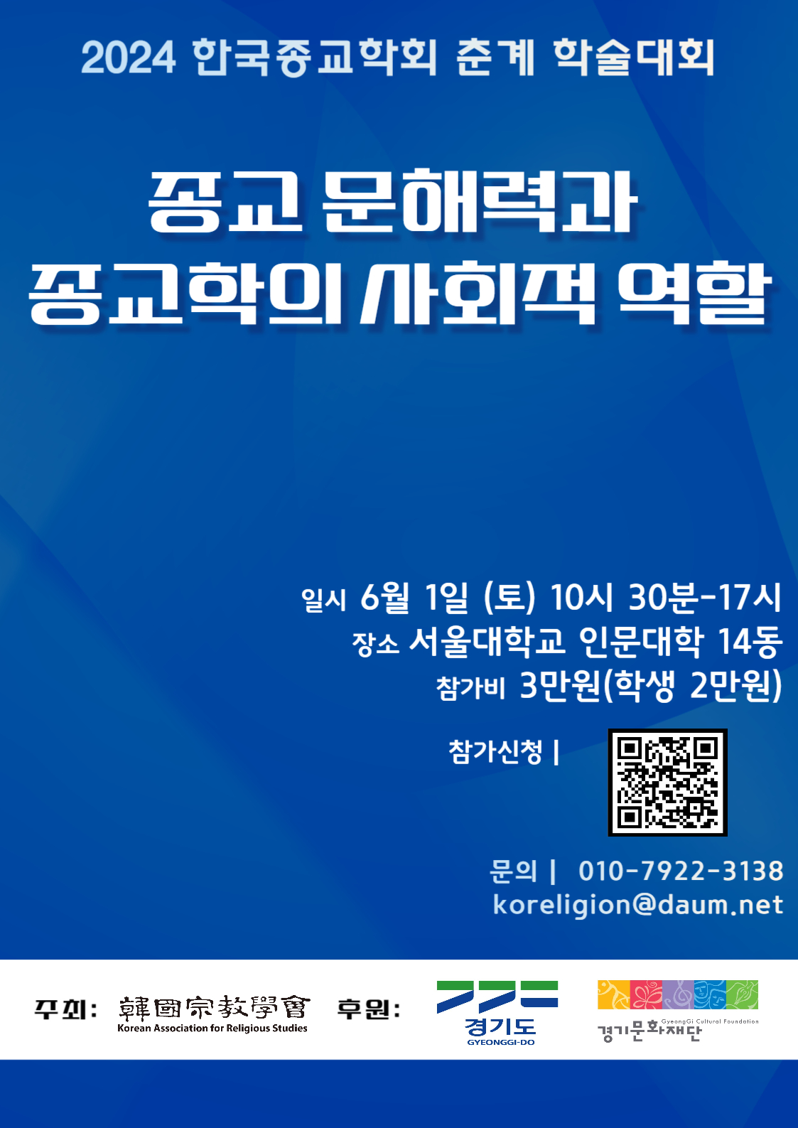문의사항은 학회공식메일(koreligion@daum.net)로 보내주시면 감사하겠습니다.
