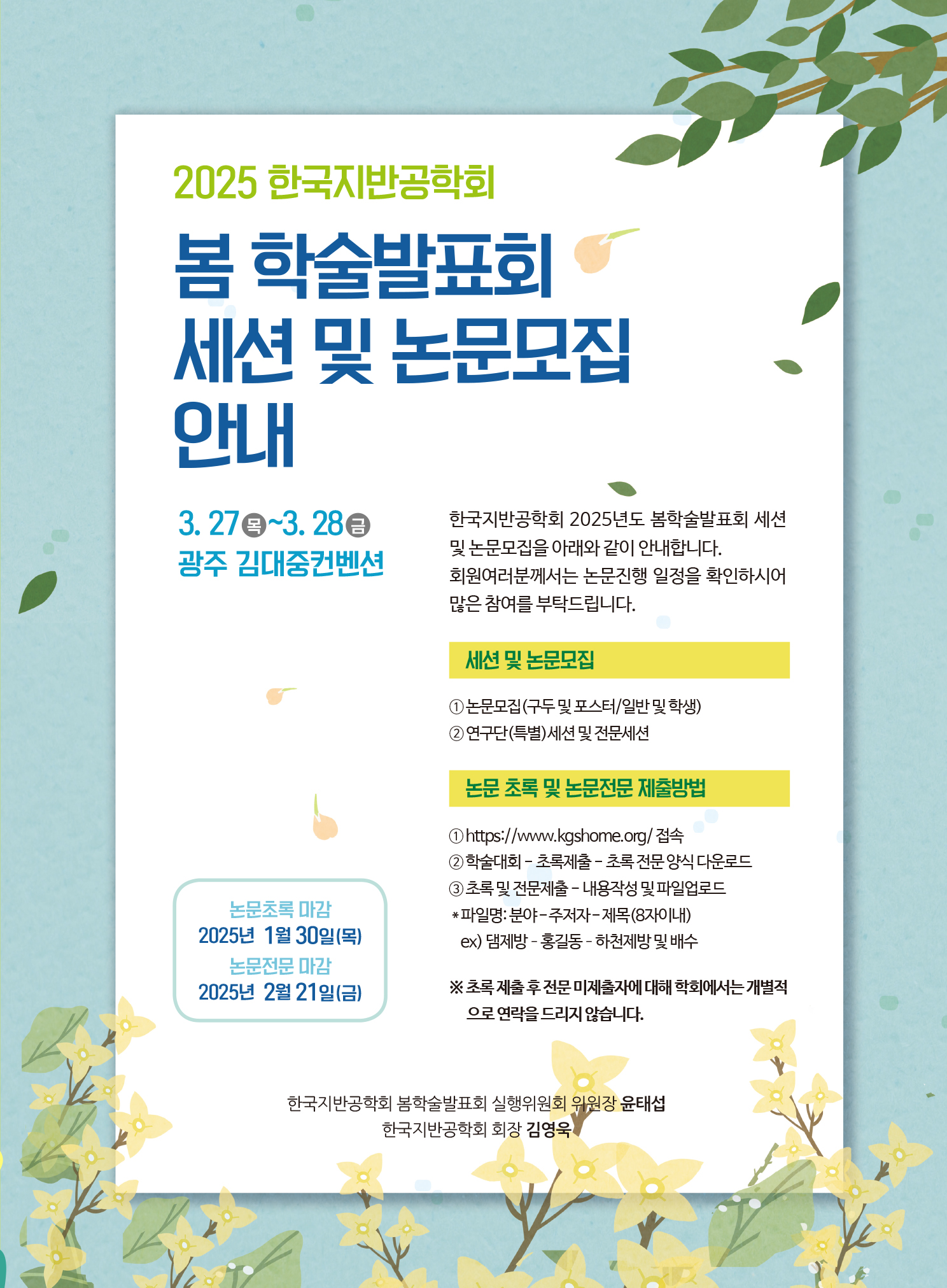 [한국지반공학회] 2025 봄학술발표회 세션 및 논문모집 안내