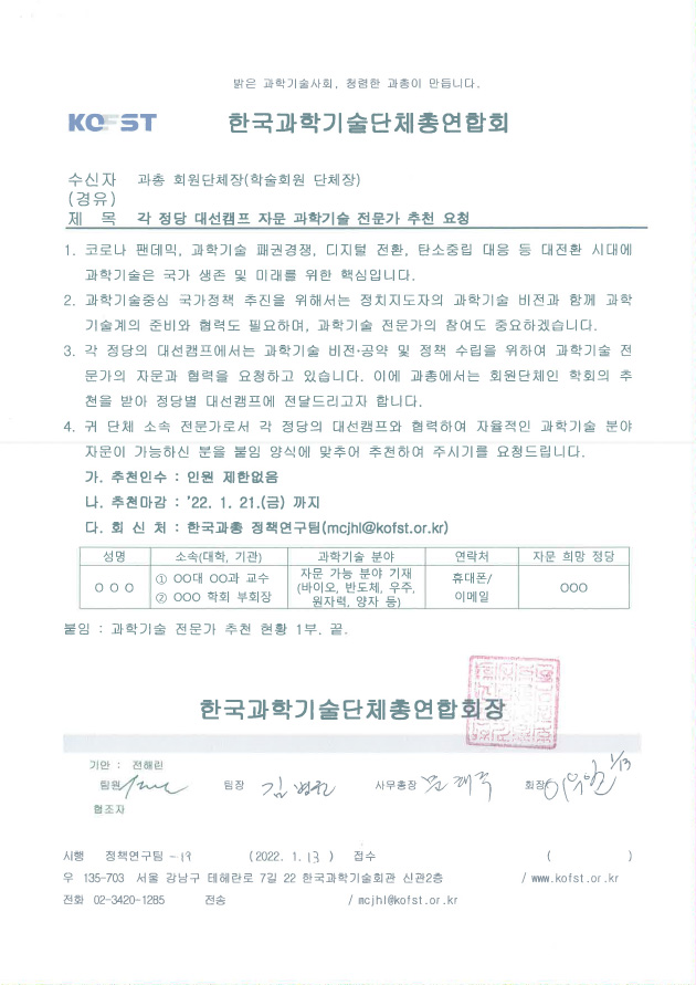 [한국과총]과학기술 전문가 추천