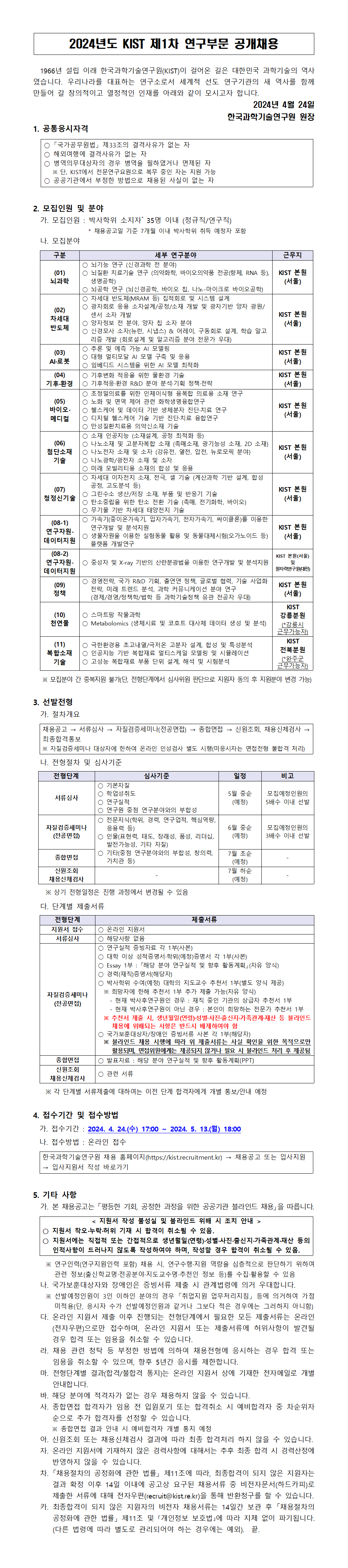 2024년도_KIST_제1차_연구부문_공개채용_채용공고문.png
