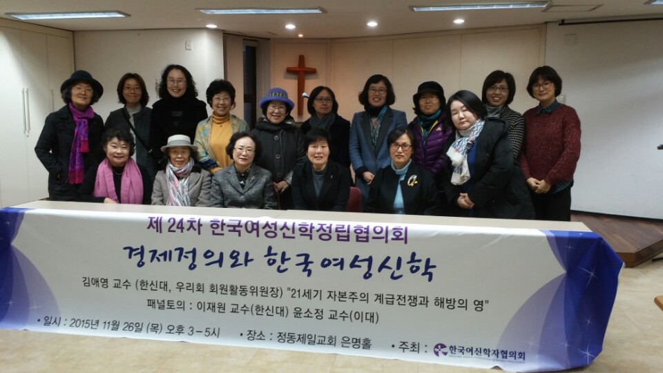 이번 정립협의회는 '경제정의와 한국여성신학'라는 주제 아래 사회 이은선 교수(세종대, 우리회 신학위원장)의 사회로 김애영 교수(한신대, 우리회 회원활동 위원장)의 발표(제목 '21세기 자본주의 계급전쟁과 해방의 영')와 이재원 교수(한신대), 윤소정(이화여대)의 논찬 순으로 진행되었습니다.