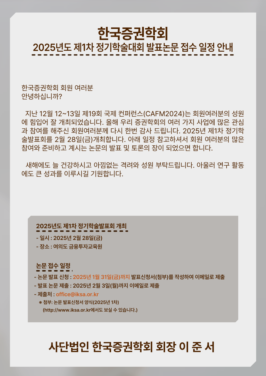 2025년 제1차 정기학술발표회 발표논문 접수 및 일정 안내