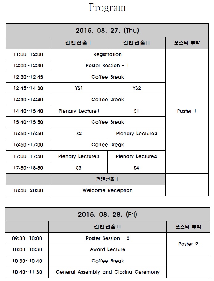 2015년도 국제학술대회 프로그램을 아래와 같이 알려드립니다.