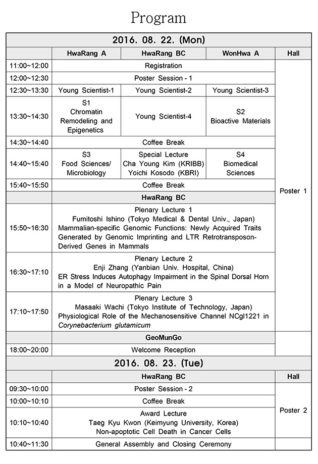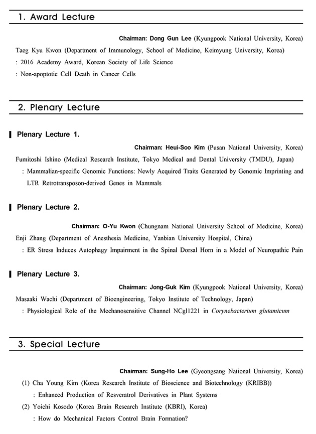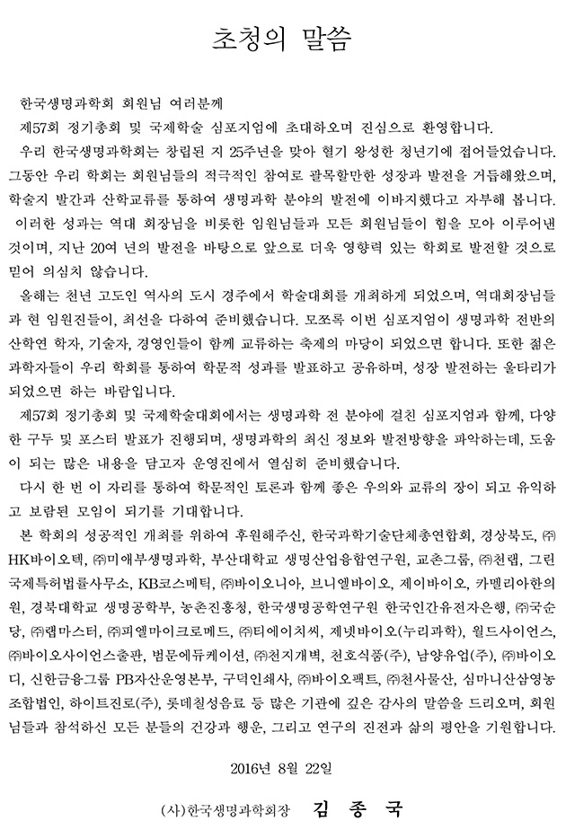 2016년도 한국생명과학회 제57회 정기총회 및 국제학술대회를 아래와 같이 개최하오니 많은 관심과 참여를 부탁드립니다.