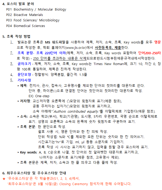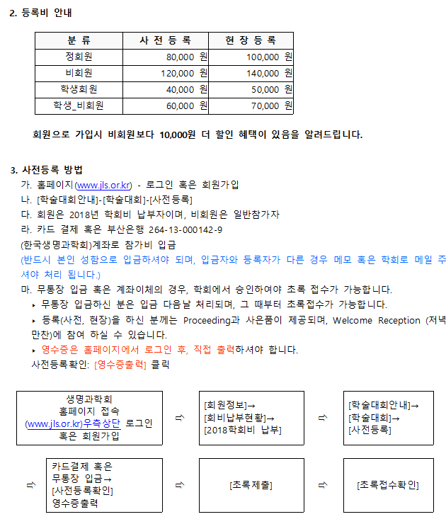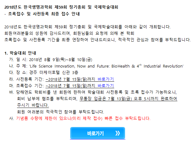 2018년도 한국생명과학회 제59회 정기총회 및 국제학술대회- 초록접수 및 사전등록 최종 접수 안내