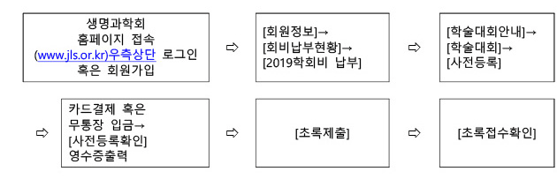 바. 당해연도 학회비를 낸 회원에 한하여 학술대회 사전등록 및 초록 접수가 가능하오니,