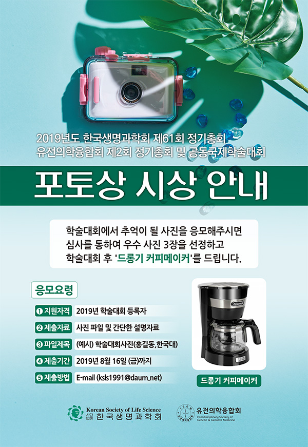 초록접수 및 사전등록 최종 접수 안내-2019년도 한국생명과학회 제61회 정기총회-유전의학융합회 제2회 정기총회 및 공동국제학술대회