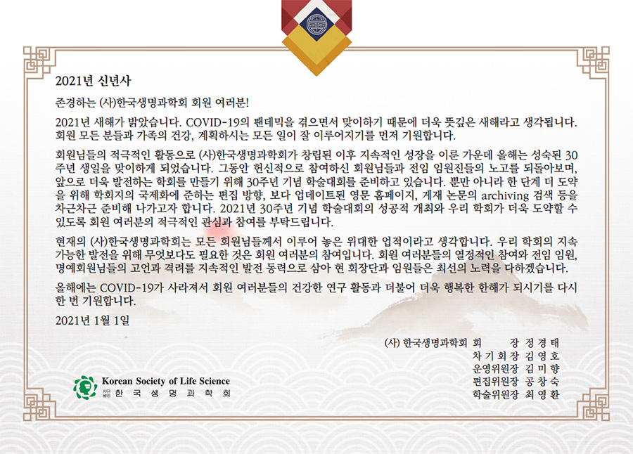 (사)한국생명과학회- 2021 신년사