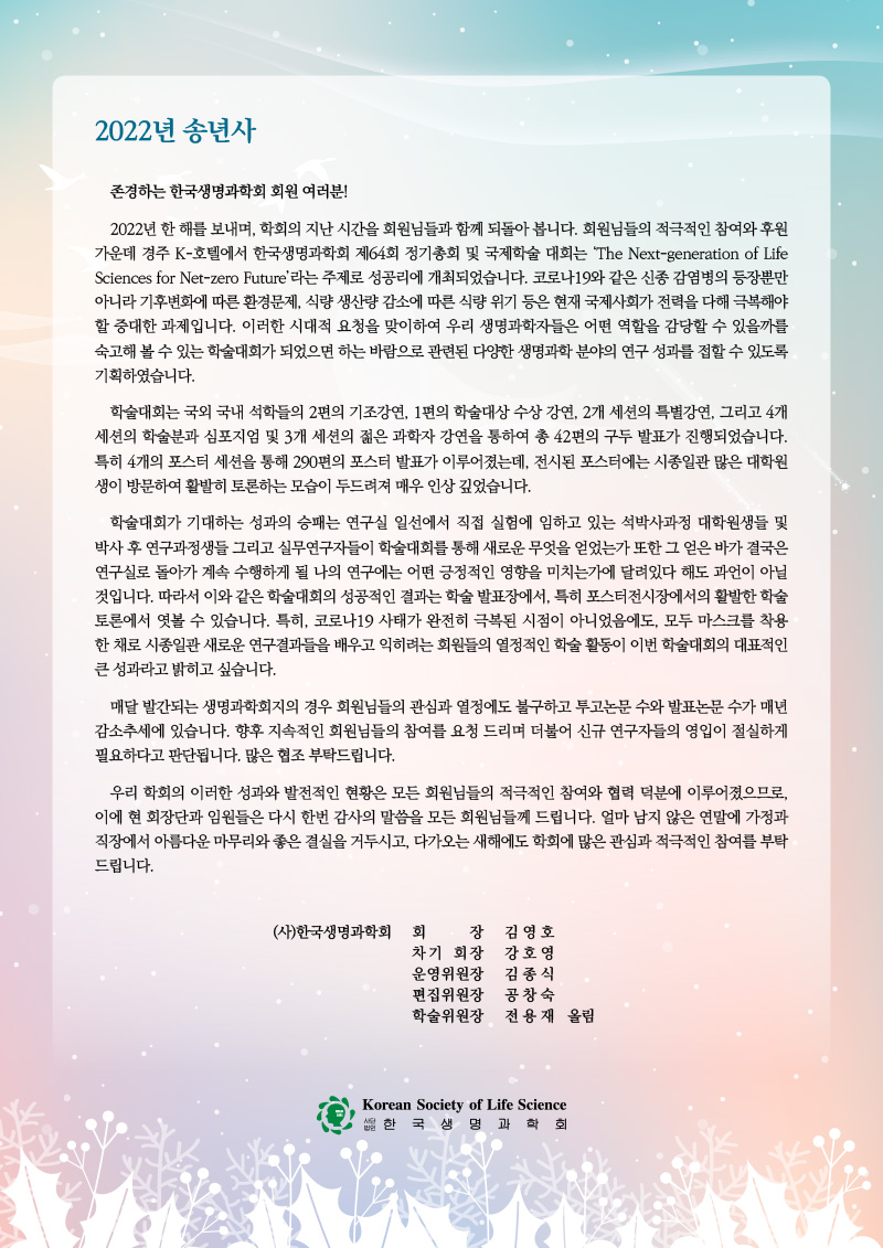2022년도 한국생명과학회 학술대회 포토상 수상자