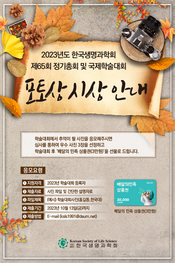 2023년도 한국생명과학회 학술상 수상후보자 추천 공고(6/14까지)