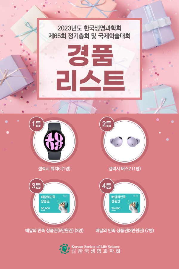 (9/4까지)사전등록 및 초록접수, 숙박안내- 2023년도 한국생명과학회 제65회 정기총회 및 국제학술대회 안내