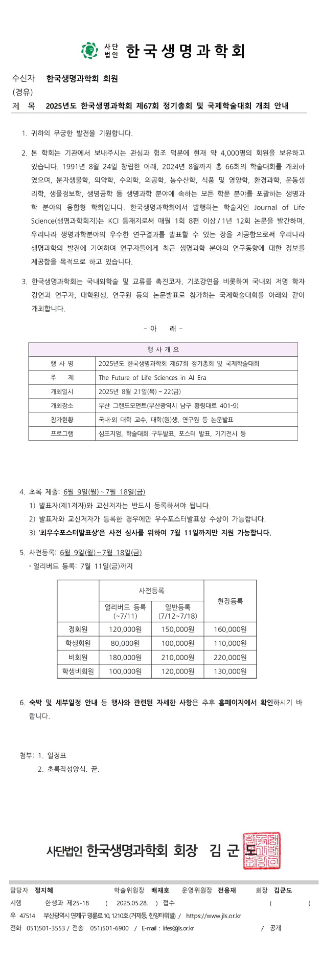 한생과 제25-18호_2025년도 한국생명과학회 제67회 정기총회 및 국제학술대회 개최 안내.pdf