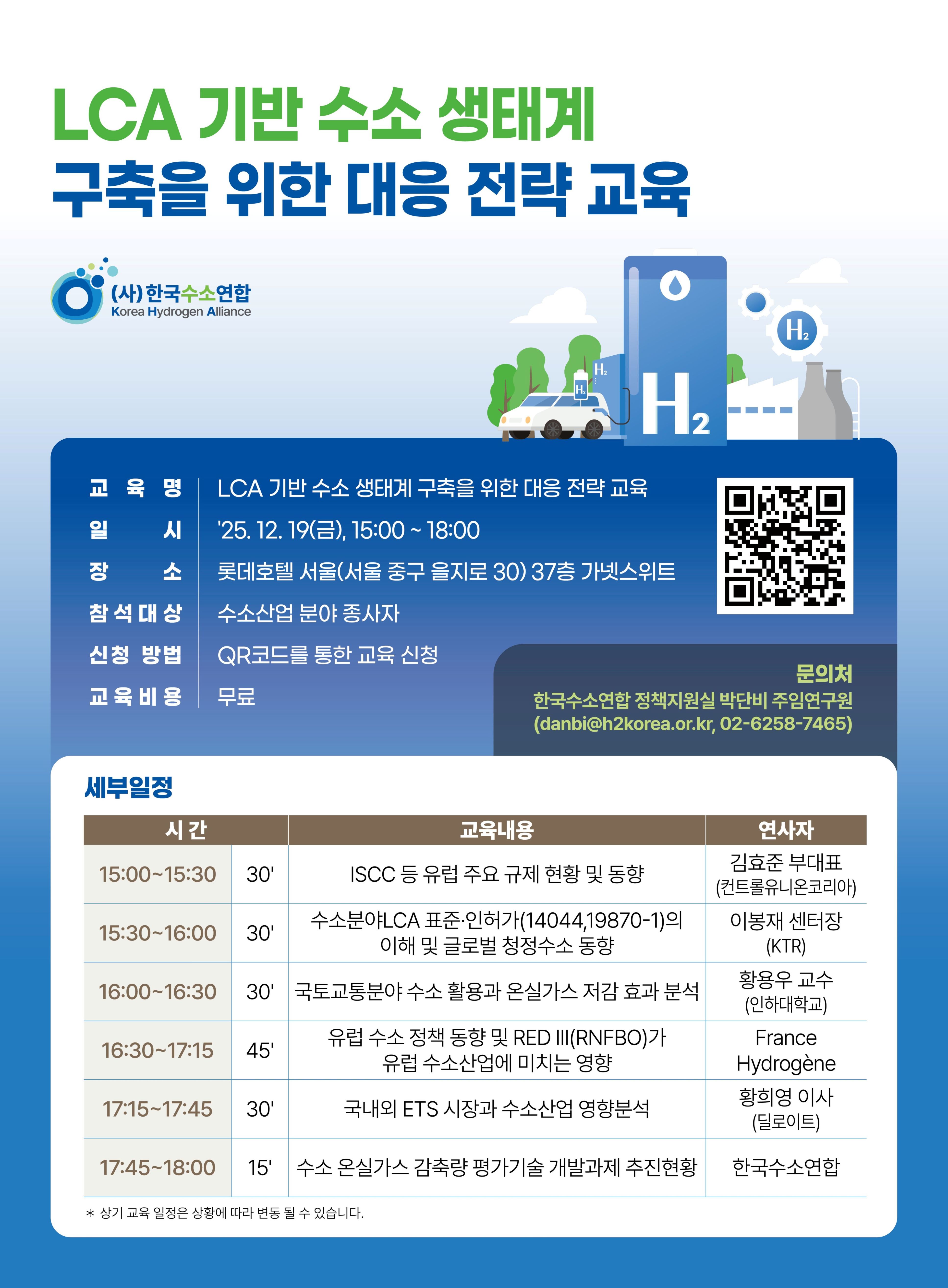 [한국수소연합]LCA 기반 수소 생태계 구축을 위한 대응 전략 교육 개최 안내
